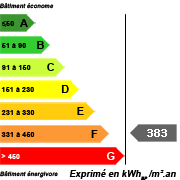 DPE : F383 / C12 .Montant estimé des dépenses annuelles d'énergie utilisées pour un usage standard : entre 1840 € et 2520 € par an. Prix moyens des énergies indexés au 1er janvier 2021 (abonnement compris).