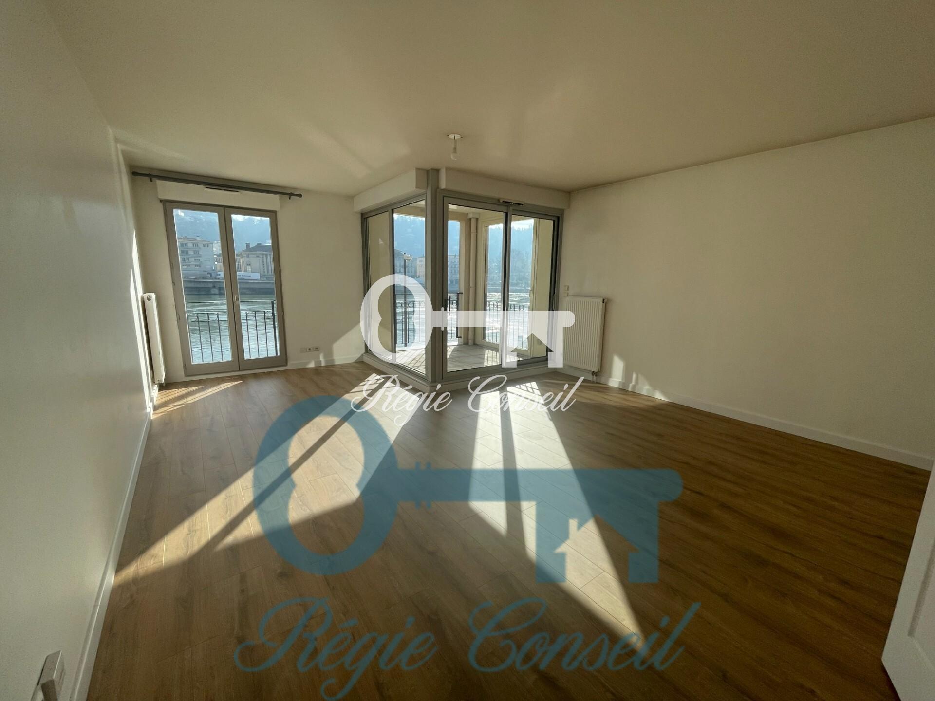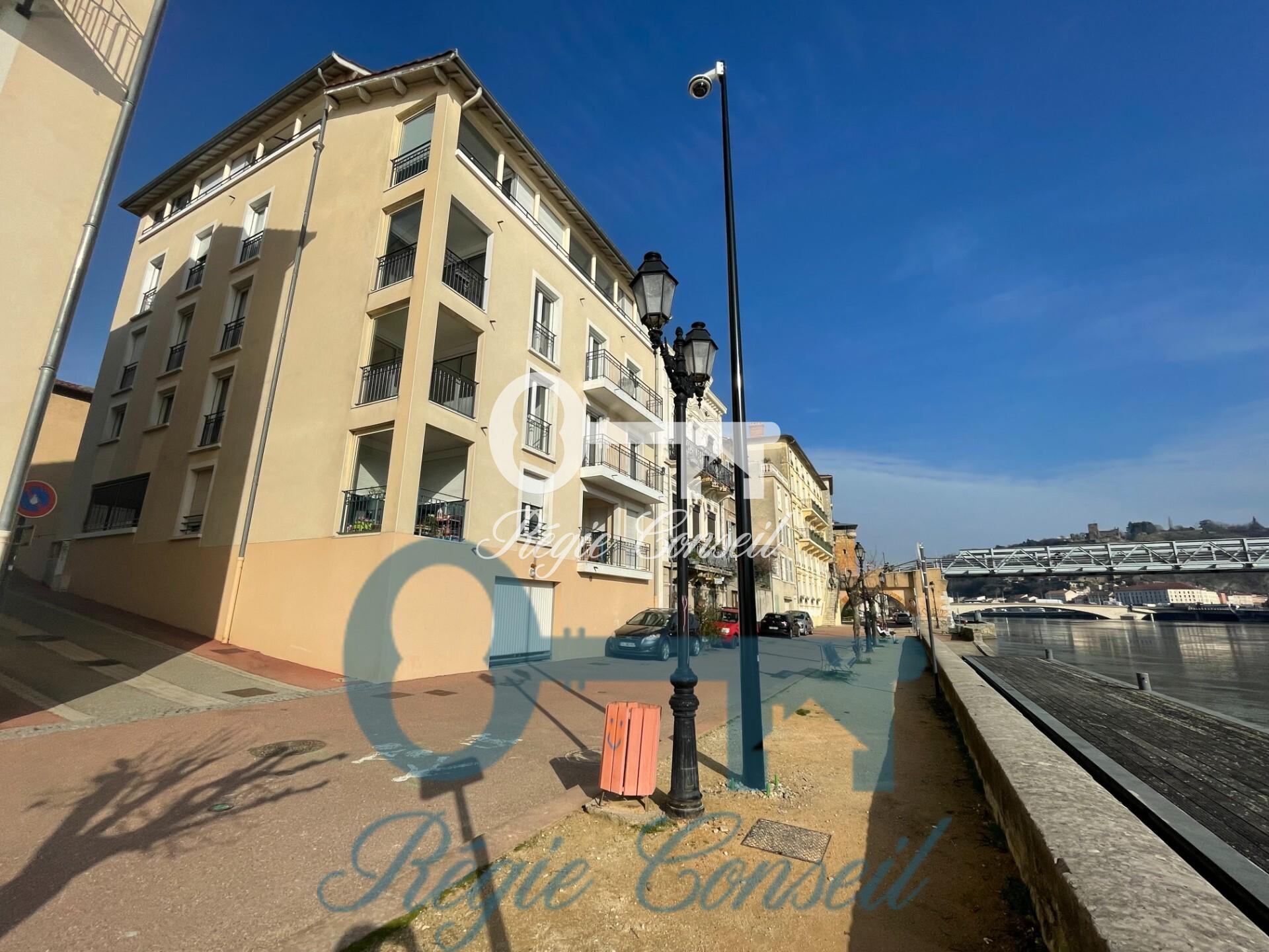 STE COLOMBE, T3 de 76.40m² situé au 1er étage d'une résidence avec vue sur Rhône, comprenant : hall avec dégagement, cuisine (10m²), séjour de 26.83m²m² avec loggia côté Rhône, 2 chambres (10 et 15m²), SDB avec baignoire, WC. Chauffage individuel au gaz. Garage n°4 (17.47m²) et cave n°7 (2.89m²). Disponible : 26/05/2026.